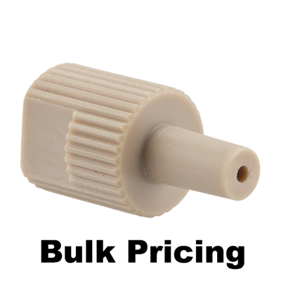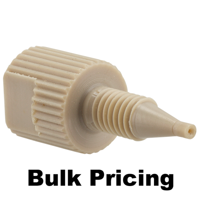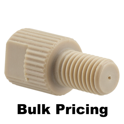 Adapter, for use with low to medium pressure HPLC. Waters female to 10-32 male connection, 0.40 mm / 0.016 bore size. Natural PEEK. ARE-Applied Research brand. Bulk Price.