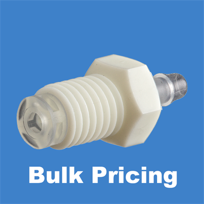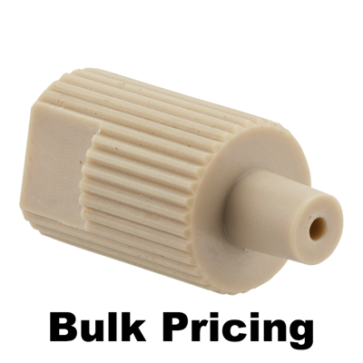 Adapter, for use with low pressure HPLC. Female luer thread style with 5/16 inch Hex to 1/4-28 UNF bottom sealing thread. White nylon ARE-Applied Research brand. Bulk Price.