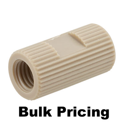Union, Connector, low pressure, 1.0 mm / 0.040 inch through hole with 10-32 to 1/4-28 reducing screw threads. Carbon PEEK Endure. Use with 1/16 tubing. ARE-Applied Research brand. Bulk Price.