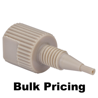 Adapter, for use with low pressure HPLC. Female luer to 10/32 male connection. Polypropylene. ARE-Applied Research brand. Bulk Price.