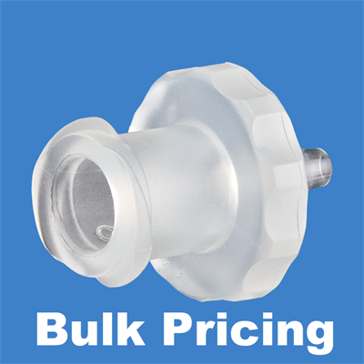 Check Valve, luer, pocket for 0.122-inch (3.1 mm) OD tubing to male locking luer. Clear-Transparent MABS and Blue-Transparent SAN with Silicone Diaphragm. Bulk Price.