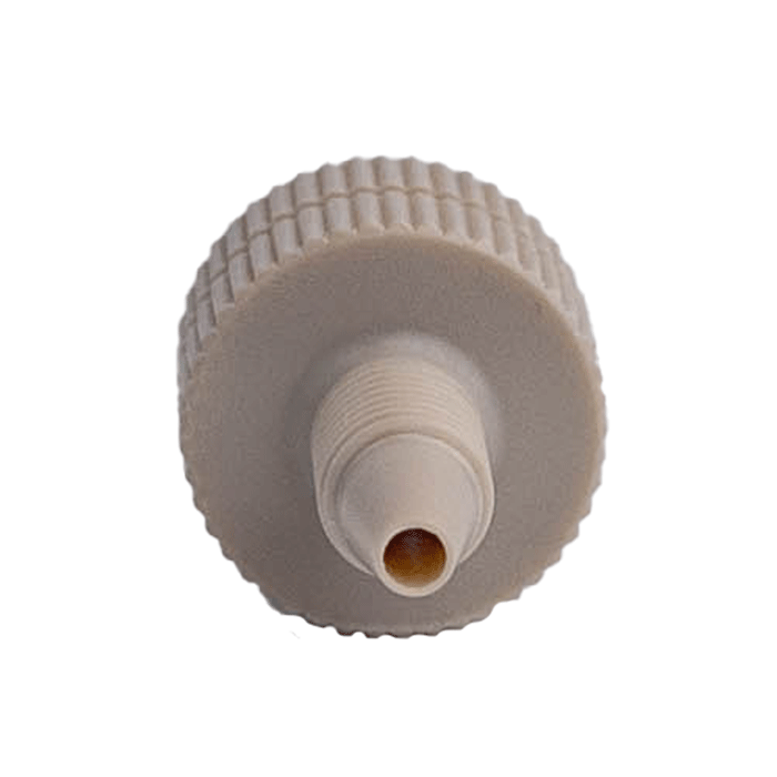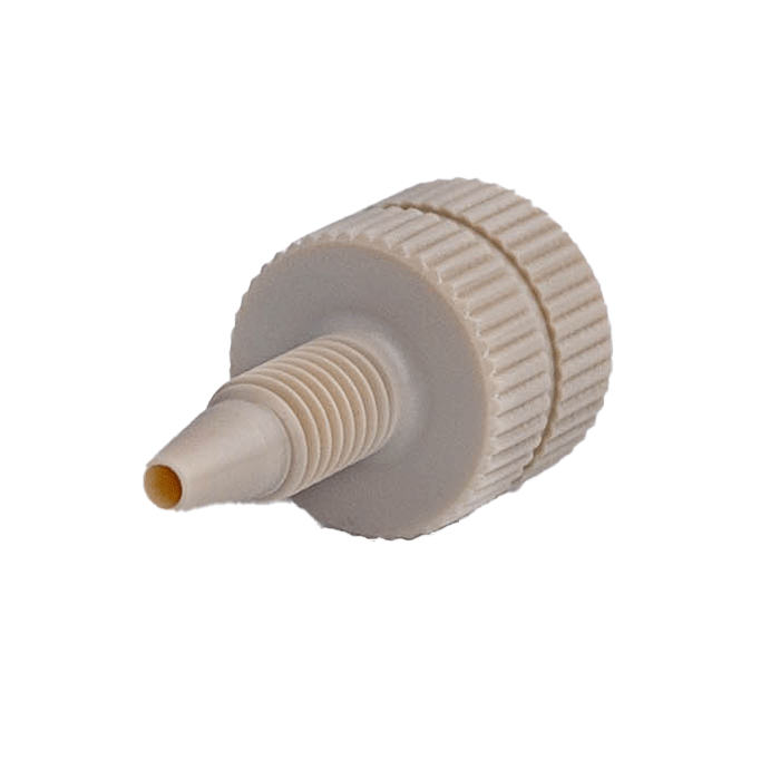Tubing Connector Fittings, high pressure, one piece, 1/16 inch, PEEK, Natural, large head with 10-32 screw threads. Finger tighten, ARE-Applied Research brand. 1 EA.