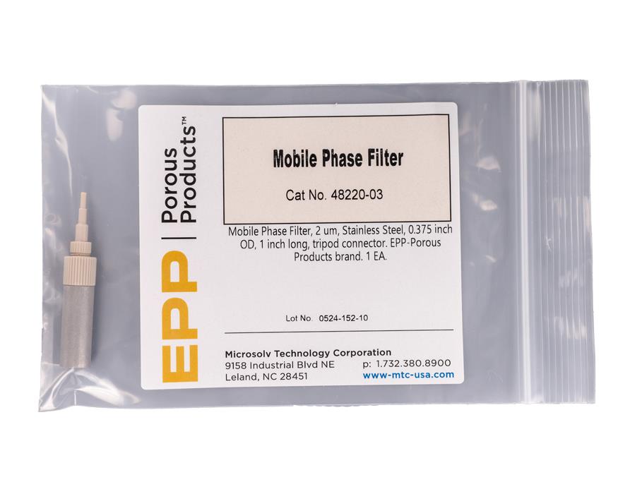 Mobile Phase Filter, 2 um, Stainless Steel, 0.375 inch OD, 1 inch long, tripod connector. EPP-Porous Products brand. Bulk Price.