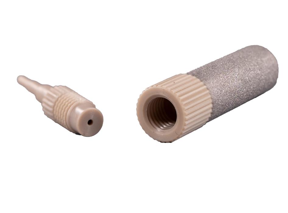 Mobile Phase Filter, 10 um, Stainless Steel, 0.375 inch OD, 1 inch long, tripod connector. EPP-Porous Products brand. Bulk Price.