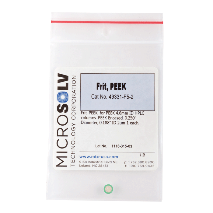 Frit, PEEK, 2 um, for use with the 4.6 mm All-PEEK column HPLC columns. EPP-Porous Products brand. Bulk Price.
