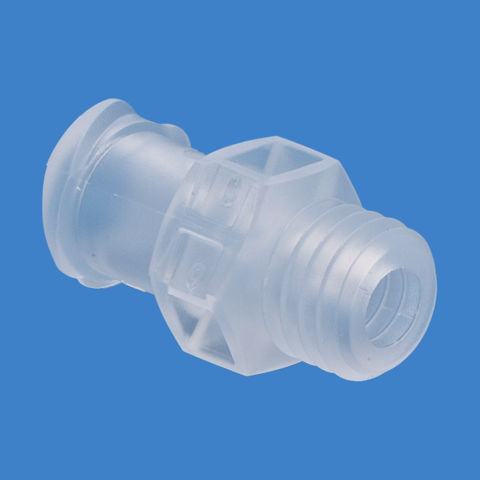 This adapter has a female Luer Slip adapter on one side and a 1/4-28 threaded male connector on the other side. Bulk packaging.