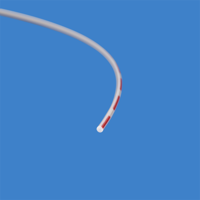 The broken red stripes are added only to the outside of the tubing, leaving the interior all natural PEEK which eliminates leachables due to color.