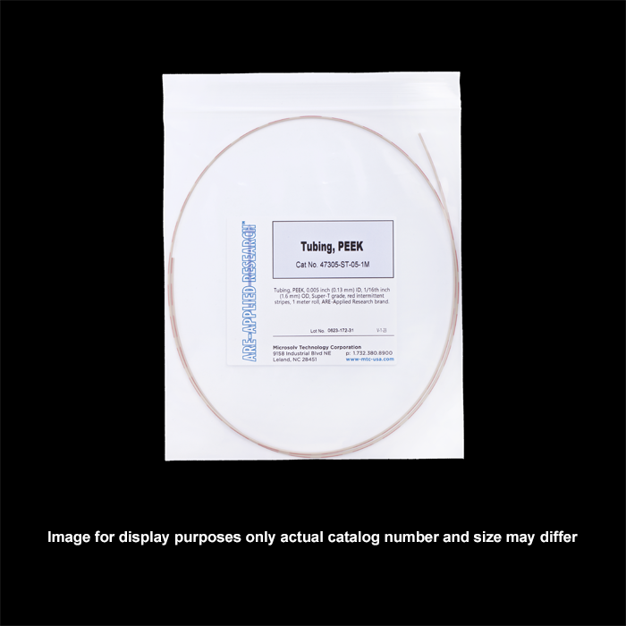 Tubing, PEEK, 0.005 inch (0.13 mm) ID, 1/16th inch (1.6 mm) OD, Ultra-T grade, natural color, Your custom continuous length tubing, priced per meter. ARE-Applied Research brand.