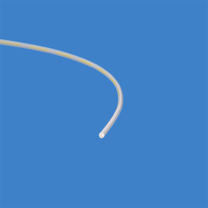 You determine the length of this Ultra-T™ grade (premium) tubing that is extruded from virgin PEEK material without any manufacturing additives. The broken yellow stripes are added only to the outside of the tubing, leaving the interior all natural PEEK which eliminates leachables due to color.