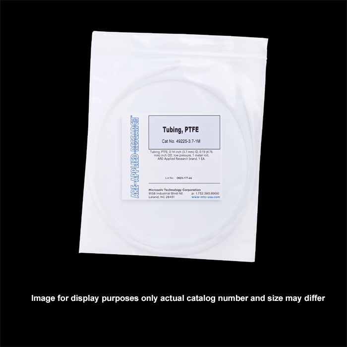 Tubing, PTFE, 0.14 inch (3.7 mm) ID, 0.19 (4.7 mm) inch OD, low pressure, Your continuous length tubing, priced per meter. ARE-Applied Research brand.