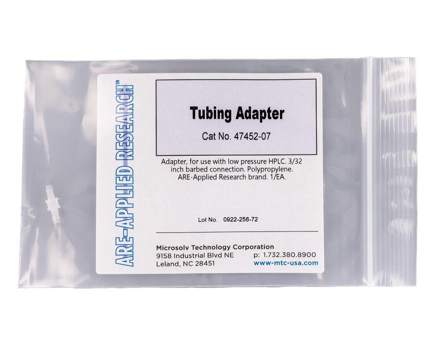 Adapter, for use with low pressure HPLC. 3/32 inch barbed connection. Polypropylene. ARE-Applied Research brand. Bulk Price.