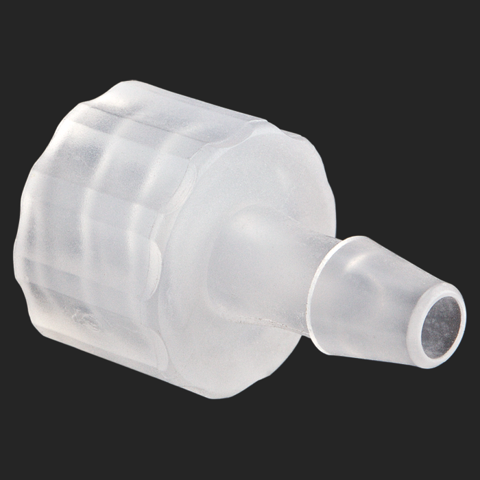 This adapter has a male Luer Lock connection on one side and a hose barb male connection on the other side that accommodates 1/8th inch (3.2 mm) ID tubing.
