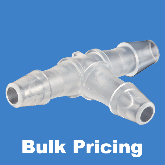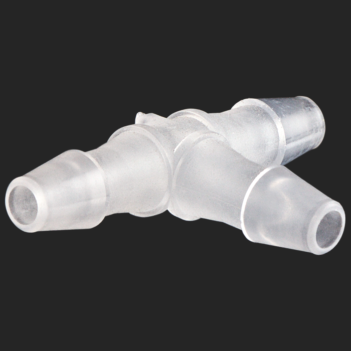 This polypropylene union / adapter allows you to connect, split or combine low pressure flow of liquid within 3/32-inch ID tubing.