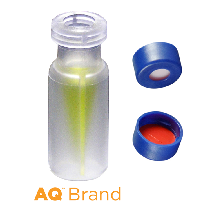 Vial & Cap Kit Includes 100 EA 300 ul, Snap top, clear polypropylene LCMS compatible autosampler vials and 100 EA matching snap caps with white silicone rubber / red PTFE pre-slit Soft-Guard septa, fitted in the blue caps. AQ Brand Easy Purchase Pack. 1/PK.